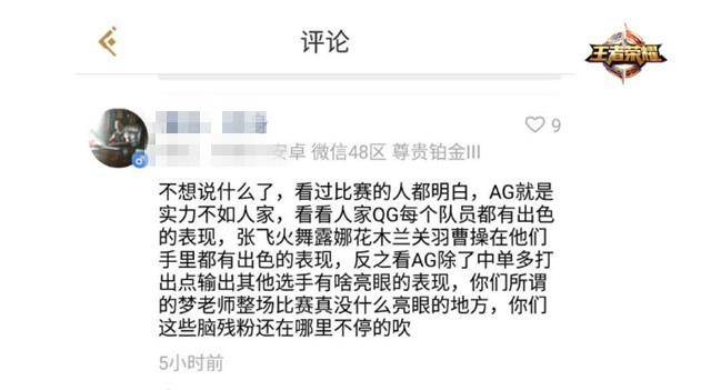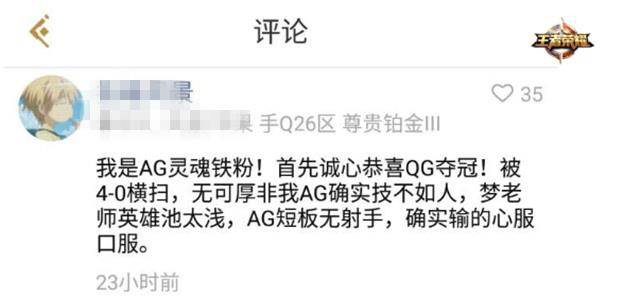 这位“执着风景”作为AG超玩会灵魂铁粉这样留言道“恭喜QGhappy夺冠,并理智分析了AG超玩会的不足”