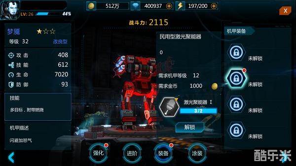 游戏中,每台机甲都会拥有默认涂装,当你获得新涂装后,就可以在机甲工厂中进行更换。