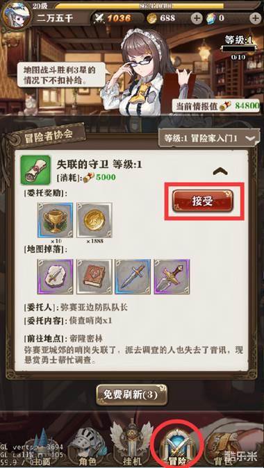 2、接受委托要消耗情报值,情报值由挂机产出。