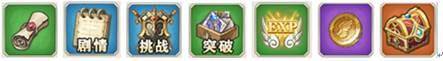 6、委有不同的种类,有普通图,故事图,捡宝图,挑战图,特产图(金币产量较高、突破材料产量较高、经验产量较高、装备产量更多更有针对性)等,从图标上可以看出。