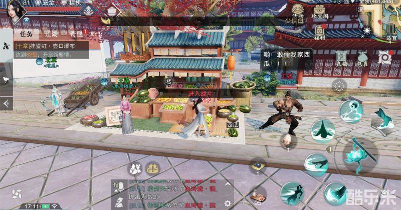 团结力量大,拉着结义队伍去金陵偷瓜,也不用再担心孤身一人被瓜农老王打了,派出两人吸引NPC注意力,其余人疯狂装西瓜,岂不美滋滋?