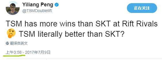 大师兄果然是骚话之王,要么不说话,要么脱口而出就是一个大新闻。TSM在洲际赛上的表现神勇,胜场虽然比SKT多,但TSM的实力到底有没有比SKT强呢?来看看推特网友们都怎么说的: