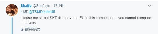 网友二:不好意思啊这位先生,SKT在这次对抗赛里根本就没跟欧洲打,你不能这样比较。