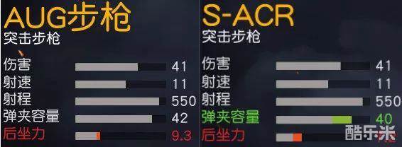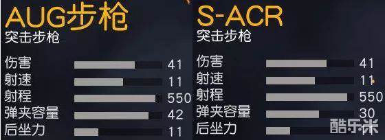 从两者数据对比可以看出,AUG步枪与S-ACR的裸配性能除弹夹容量外几乎一样。