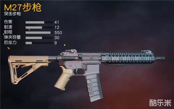 M27弹道相对集中,后坐力小,压枪也比较容易压,连续射击时,枪口不用移动太多,遇到敌人再也不描边了。