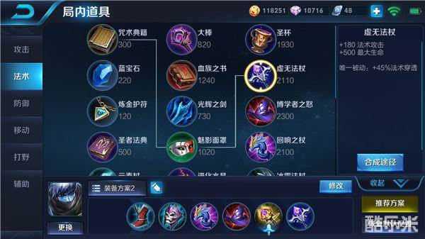 虚无法杖:提供了可观的法术攻击提升了扁鹊的伤害和回复能力,被动增加的高额百分比法术穿透,让扁鹊能轻松击杀高法术防御的英雄。
