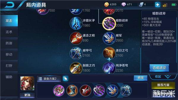 六神装:巨人之握+急速战靴+泣血之刃+暗影战斧+破军+破甲弓