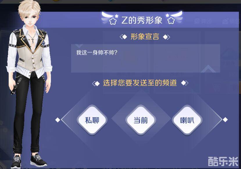 在QQ炫舞手游中,主界面有个秀形象的功能,这个功能的作用就是将你的装扮发到对应的频道让别人欣赏。在秀形象里面有3个频道,分别是私聊、当前、和喇叭频道。编辑好形象宣言后点击想要发送的频道就能把自己的形象发送出去了。