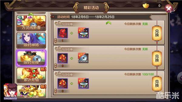活动期间,召唤师通关副本关卡、仙人试炼既有机会获得纳福春联,通关任意层伏魔录即可有机会获得贺岁鞭炮,道具可兑换封神世界中的各类稀有道具,还可兑换压岁包,海量金钱和珍贵稀有道具都隐藏其中!