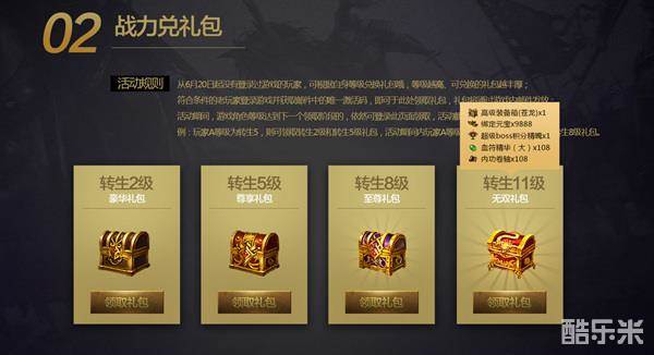 《烈焰龙城》“天下第一”火爆开启,为回馈广大玩家的支持,特开展“王者回归 再战龙城”的福利活动,活动期间,所有新老玩家均可领取高玩礼包一份;而从6月20日起没有登录过游戏的玩家,可根据自己的转生等级,获取激活码,前来专题页兑换元宝大礼!转生等级越高,可兑换的礼包越丰厚哦!同时,现有的游戏玩家邀请老战友回归,老战友领取转生礼包,邀请人则也可获得对应的青铜、白银、黄金、钻石大礼包!一次邀回,两人受益!赶快邀请你曾经的老友来战吧!