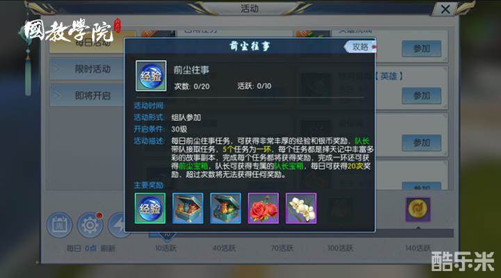 这算是奖励经验比较多的一个副本,一天可以做20次,5次为一个小循环。虽然经验多,但是过程比较麻烦,要么做一个给力的队长,要么做一个安分的小队员,跟着队长跑活动就好啦!当然,除了丰富的经验,还可以获得宝箱和玫瑰等丰厚奖励!