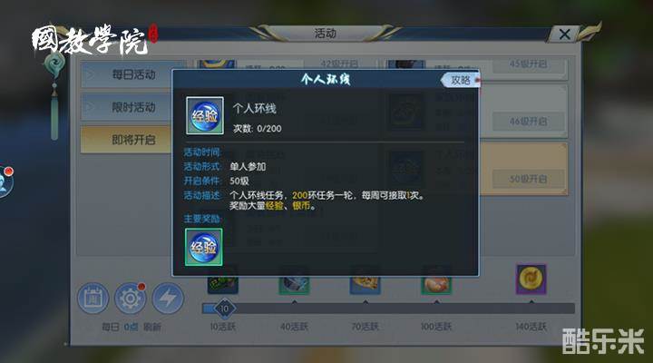 这个是进入游戏7天之后开启的活动。不过……200环任务,看着200环,就好怕怕!可是,这丰富的经验能放过吗?作为要努力升级的小伙伴,我们要经验!200环就200环,咬着牙也要做完。俗话说“自己选择的路,跪着也要走完”,为了升级,我也拼了!