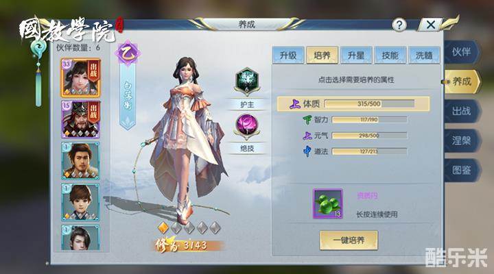 使用资质丹可以提升伙伴的四项基础属性,不过每一项属性都有其培养上限,四项基础属性全部培养满之后,同伴的作战能力会大幅度提升。这个是比较重要的一项,如果觉得伙伴哪一项比较缺少,就可以先升级伙伴缺少的那一部分哦~