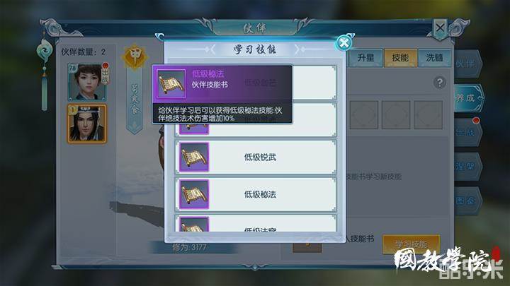 伙伴可以通过技能书来学习技能,如果是搭配的远程法术输出伙伴,那么推荐学习的技能是:秘法(伙伴绝技法术伤害增加10%)、精准(增加绝技15%命中率)、神术(伙伴绝技增加10%法术伤害)、法穿(伙伴绝技释放时忽略目标10%法术防御)。