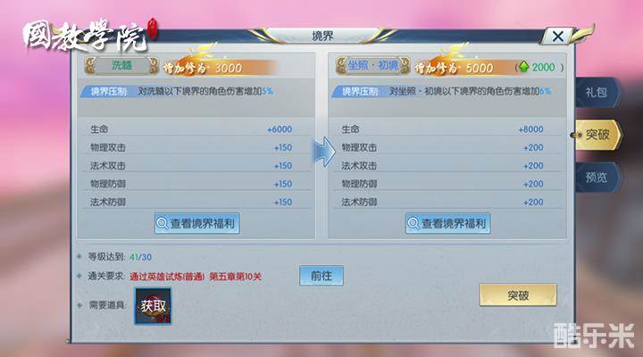 境界可以说是修为高低的最直接呈现,提升境界不仅可以获得大量修为,还能获得额外的奖励,有时还可以解锁新的游戏玩法。境界的提升需要修为达到,完成相应的通关任务,就会有一定数量的境界丹。境界提升之后还能对低于自身境界的少侠有着境界压制,想想就会觉得很厉害。