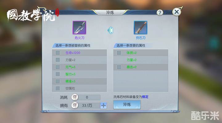在《择天记手游》中,武器可以说是最重要的装备了,尤其是槐院门派,是绝对不能没有了手里的刀的。武器可以淬炼五条属性,合理的选择武器淬炼属性可以让战斗能力大幅度提高,今天我们就一起看看槐院门派的武器淬炼属性选择。