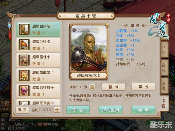 阵法激活的条件很简单,只要队伍的成员按照一定规律使用同样变身卡,就能激活不同的阵法。这里要注意的是,使用变身卡的道友触发的阵法属性,与阵法的种类没有关系,只和使用的变身卡有关。例如道友使用金头陀卡,那么无论他激活何种阵法,其阵法属性加成都是物攻+4%。