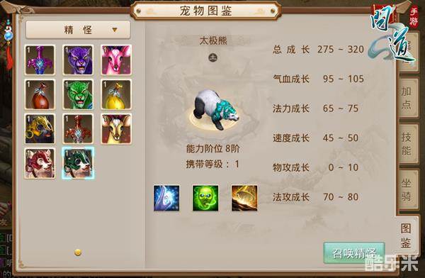 1级就可以携带,但是人物到40级才可以去召唤获取,拥有着高达85的的法攻成长,可以强化8次,一次加6点。总体来说这个宠物适合前期过渡使用,不要强化也不要点化。