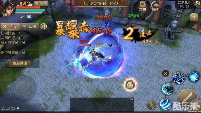 军事演习类游戏的战斗,胜负往往发生在一瞬之间,你可能刚开始游戏就已经被淘汰出局,这样的战斗对新手来说非常不友好。而作为冷兵器格斗的MMO手游《刀剑斗神传》,“江湖乱斗”的战斗乐趣更多的在于过程之中。
