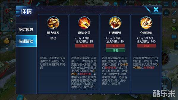 孙尚香伤害很高操作也很简单,只要平时多多练习掌握了她的技能之后,就可以用来上分啦!