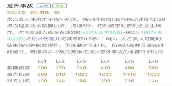 技能解析:太乙真人使用一技能后,移动速度变快,结束时会发生爆炸,对周围敌人造成法术伤害并将其晕眩,可随时结束并触发爆炸,但时间越长,伤害越高并且晕眩时间越长,若爆炸命中敌方英雄将减少一技能的全部冷却时间,一技能是太乙真人的一个核心控制和输出技能,对战中可以在草丛卡视野,使用一技能等待一会再接近目标,如果有点距离可以二技能贴近,等一技能蓄力满释放,再次刷新然后暂时撤离等待蓄力,来达到一个多次控制效果。