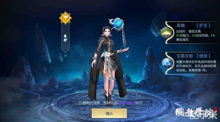 护主:真麟。出战时,增加主角20点智力、40点全防御。2%暴击减伤。