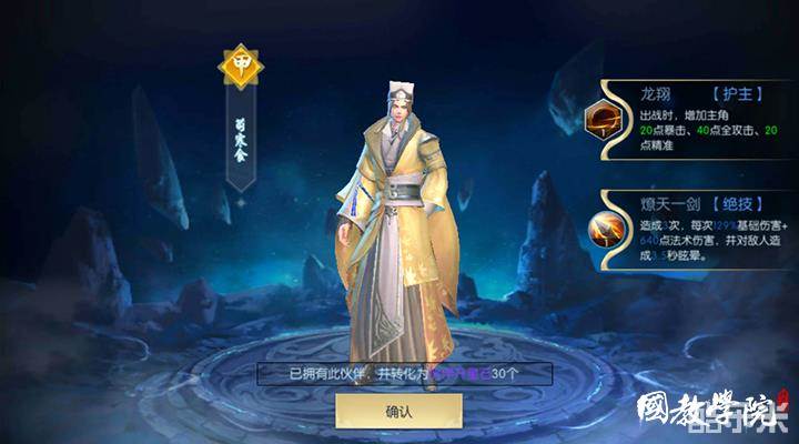 护主:龙翔。出战时,增加主角20点暴击、40点全攻击、20点精准。