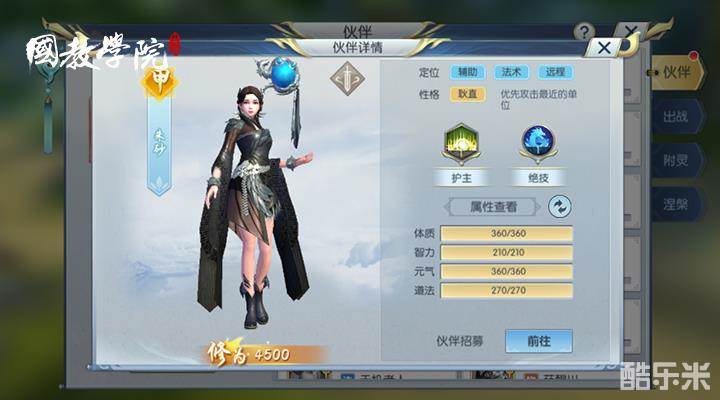护主:真麟。出战时,增加主角20点智力、40点全防御。2%暴击减伤。
