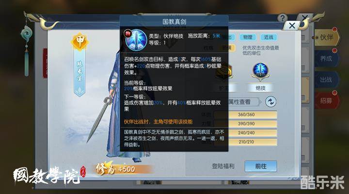 陈长生的绝技是国教真剑,召唤名剑攻击目标,造成5次伤害,每次160%基础伤害+220点物理伤害,并有概率造成3秒眩晕效果。既有输出又有控制,可以说是攻防兼备。但是其输出能力并非顶尖,控制能力也并不稳定,仅仅是一定概率下提供控制。所以可以说陈长生的绝技中规中矩,没有什么出彩的地方,唯一的好处就是比较万金油,适合于各种门派。在前期伙伴较少的情况下,任何门派获得了伙伴陈长生,都可以去出战使用。