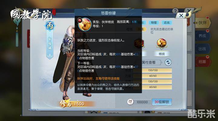 绝技:怒雷惊嚎。妖族之力迸发,猛烈攻击身前敌人。对目标区域造成3次,每次80%基础伤害+220点物理伤害。