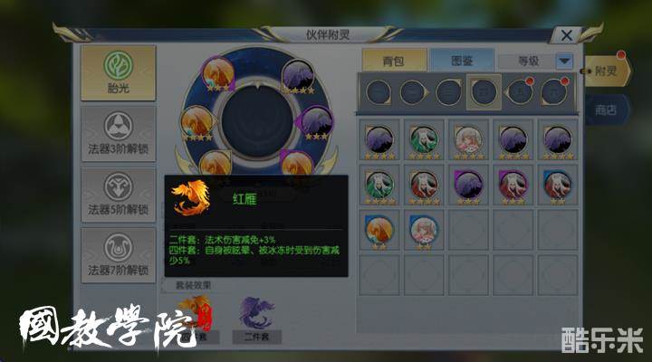 红雁四件套效果:自身被眩晕、被冰冻时受到的伤害减少5%。