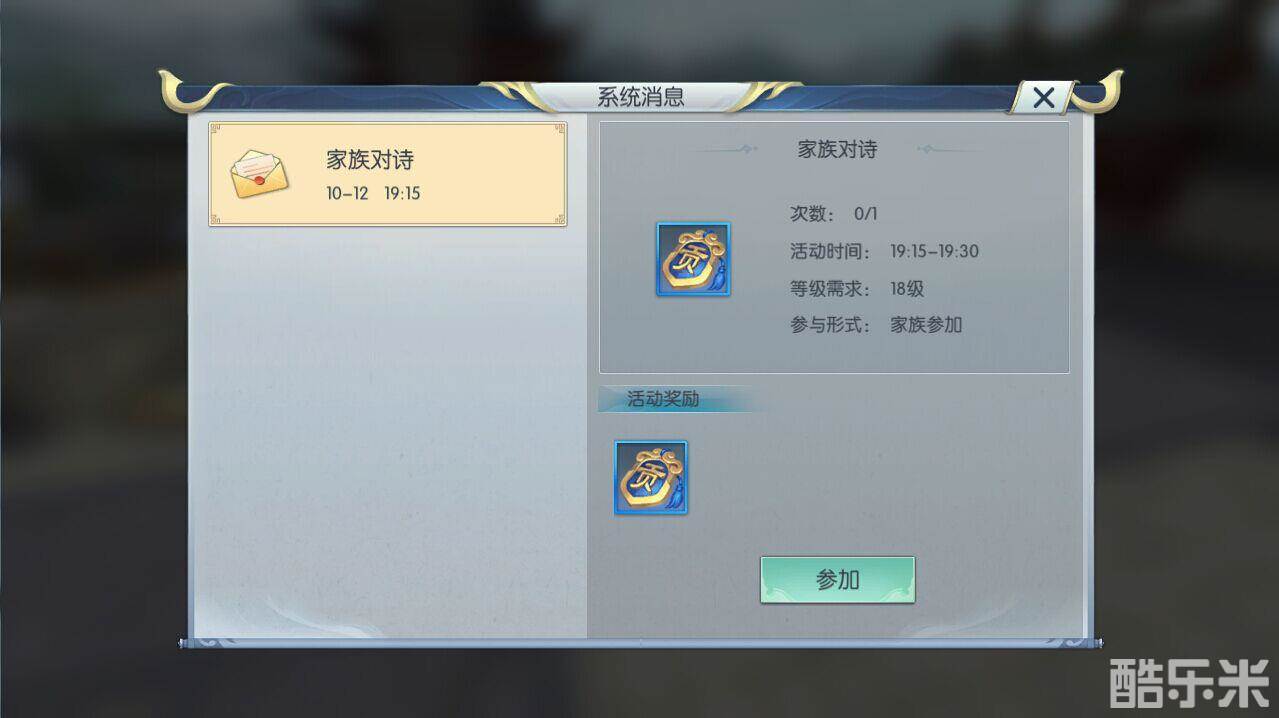 家族对诗是一个答题类玩法,活动参与难度不高奖励却异常丰富,是我们获取装备强化玉、帮贡的重要途径。最终答题排名前三的家族还将获得系统公告进行表彰,各位有才华的道友们千万不可错过哦!