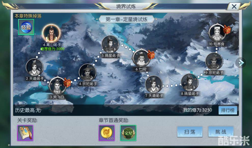 2、每章境界试炼都拥有3个boss关卡,通关后可以领取宝箱奖励,宝箱内有大量的银币、经验以及道具奖励;