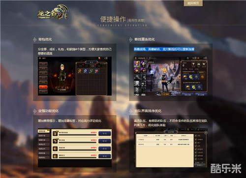 除了新职业与新玩法,《龙之谷手游》还针对游戏中的背包分类作出了优化,全部,成长,礼包,和家园4个类型,更加方便大家查找自己想要的道具。同时,为了让玩家体验到更优质的游戏体验,英雄战场、英雄峡谷、龙穴三大玩法断线后可以重新连接。变强界面、组队界面也得到了贴心的优化。此外,游戏还将针对部分玩法做出减负调优,使勇士们可以更轻松地体验冒险之旅。