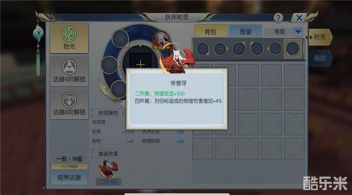 帝獠牙四件套效果:对目标造成的物理伤害增加4%。