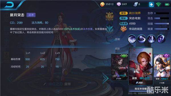 解析:露娜的核心输出技能和位移技能,可以对一条直线上的敌人造成高额伤害,并且在命中带有标记的敌人后会立即刷新,是让她CARRY全场的根本;此外该技能的位移距离很远,如果是在团战中,可以利用小兵作为跳板快速突进到团战中,确保击杀C位的效率。