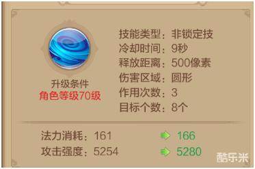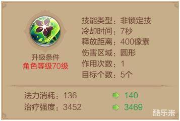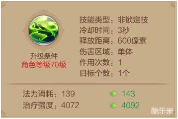 技能的攻击范围很窄,而且施法的距离很有限,相比于引流殇和灵凤翔,该技能基本上不会被放到技能版面上,因为一般的搭配都是三个战斗技能加上一个治疗技能,所以该技能可以学满,但是不建议放在主要的技能面板上。