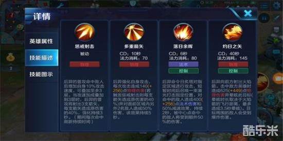 技能解析:开启一技能后,后羿的普攻会附带额外伤害并且会分裂成三支箭,分裂出来的两支箭是原来50%的伤害,原本的攻击目标依然受到100%的伤害。分裂出来的两支箭不能触发法球效果。这个技能能够让后羿在团战时能够提供大量的AOE输出,保证了后羿的打团能力,也是后羿在后期carry的保障。