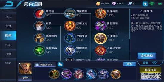 出装推荐:上单一套,辅助一套