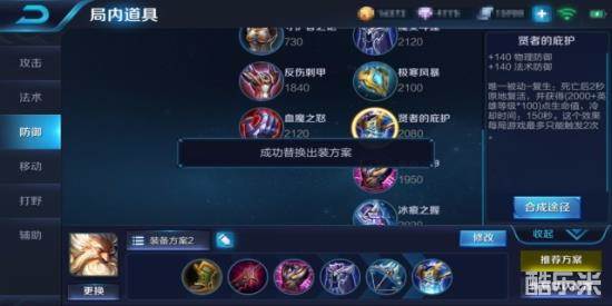 贤者的庇护:增加老夫子的一条命,增加后期的容错率,改版后一场比赛只能触发两次复活效果,所以两次用完后可以根据情况选择一件物理防装或法术防装。