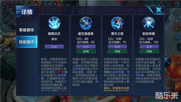 解析:被动技能使钟馗有着额外的攻击能力,受到单次伤害超过一定数值时可以引发爆炸,能够对范围内敌人造成法术伤害。