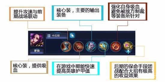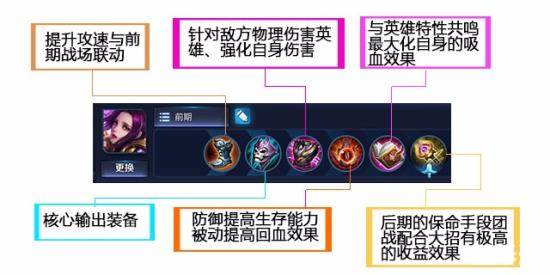 第二套出装与第一套其实差别不大,但是思路是完全不同的,因为第一套是在有铭文吸血的支撑下建立的,而第二套思路则是用于铭文缺少吸血的玩家使用。