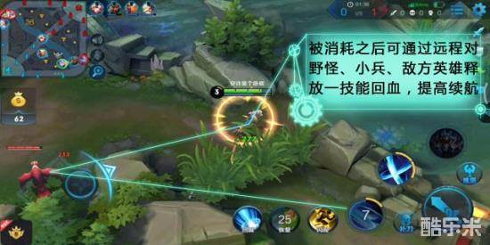 在前面的分析中我们就说过铠拥有极强的续航能力,这来源于他的一技能与二技能被动,在对线被消耗时可以通过一切可选目标来恢复自身损失的生命值。其次当脱战后比如远程支援时二技能也能提供一定量的生命值与蓝量恢复,所以在游戏实践的过程中可以通过利用塔后回血包、自身的治疗技能以及一二技能来做到一个长期的抗压续航。