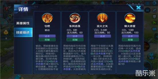 周瑜的三技能十分霸道,伤害高,CD短。如果敌人站在火区上接到大招,伤害瞬间爆炸,还能晕眩敌人一秒。一般的话,三技能都要配合二技能使用,效果非常显著。如果敌人血量很残的话,也可以用来收割人头。