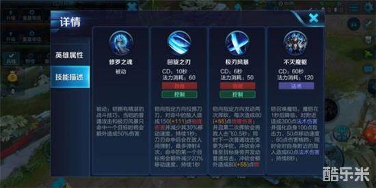 解析:首先说一下技能被动,离战斗后铠每秒回复1%最大生命值及最大法力值并且会增加 自身移动速度,这样铠在对线时即使被敌方消耗只用呆在塔下就可以恢复生命法力,不用频繁的回城而导致漏掉兵线,并且移速的增加让铠在支援上更加迅速。