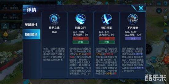 解析:这个技能的让铠在单挑环境中有着非常强大的优势,在当前版本大部分阵容只有一个法师脆皮时铠在团战中对的威胁更大,但当有两名或以上的敌人时,铠的伤害就会减弱很多,所以在团中尽量绕后输出。