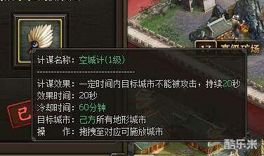 计谋效果:一定时间内目标城市不能被攻击,持续20秒。