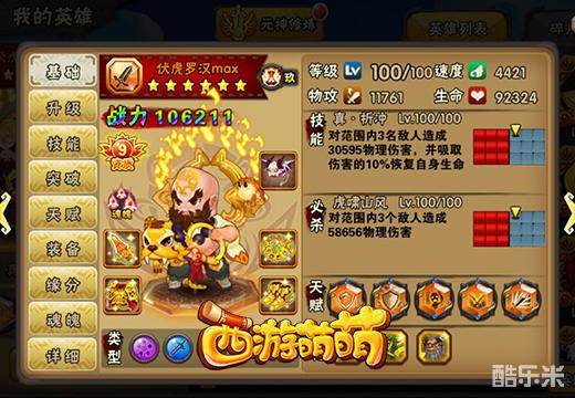 除了哪吒之外,《西游萌萌》里还有两个英雄就是降龙和伏虎罗汉。他们两位虽然没有哪吒的防御力高,但是入手难度相对哪吒更容易。降龙伏虎主要是依靠自身的特殊能力保证存活,技能自带吸血,在被打残的情况下,罗汉能依靠强大的技能,瞬间恢复大量的血量,并且有不俗的输出能力,这是有多强大。