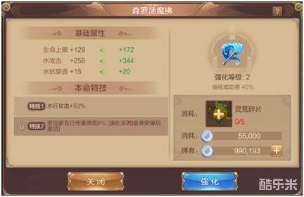 2)使用【灵荒碎片】加少量的银币可强化本命法宝,每次强化都有概率成功,如果失败,则会提高下一次强化的成功率,最高达到100%