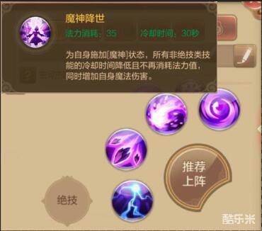 介绍:对自身施加魔神状态,所有非绝技技能冷却时间降低,无需消耗法力值释放技能同时增加自身魔法伤害